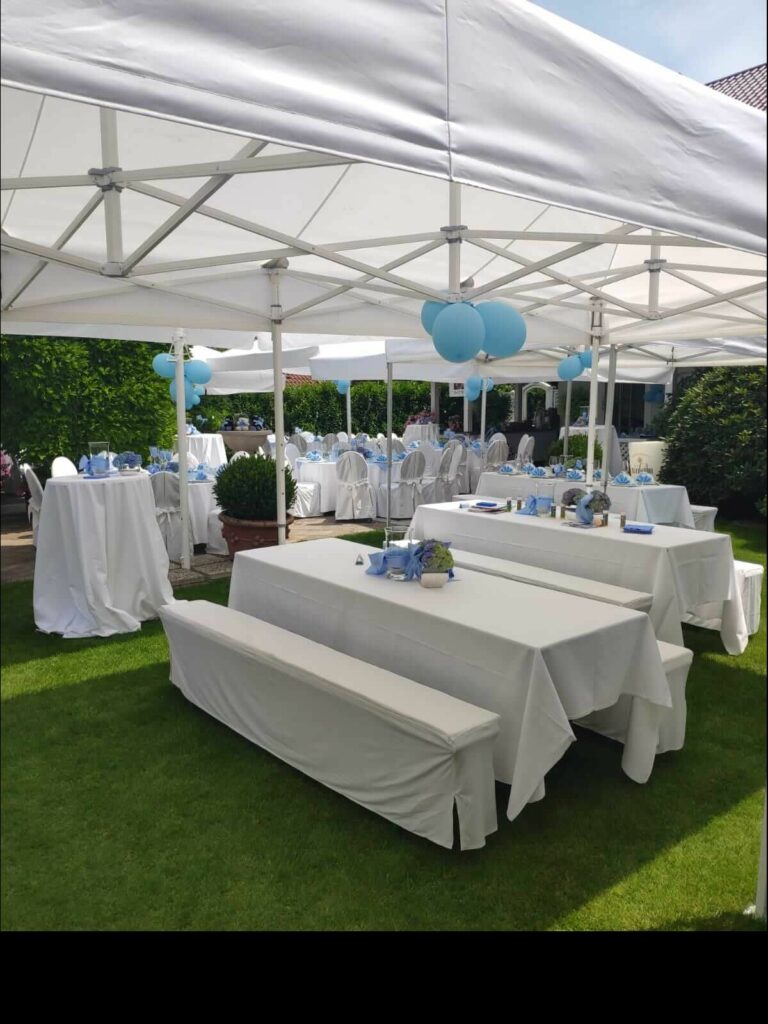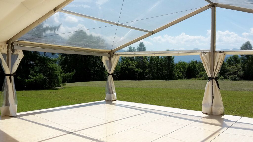 Neben dem klassischen Zelt bieten wir Ihnen auch eine Auswahl an Zusatzausstattung an. Angefangen von Dekostoffen, Teppichböden, Nesselhimmel über Mobiliar bis hin zur Sicherheitsausstattung. Wenn es etwas besonderes sein darf, erhalten Sie unsere Zelte auch mit Fensterplanen, durchsichtigen Dächern oder Seitenwänden.